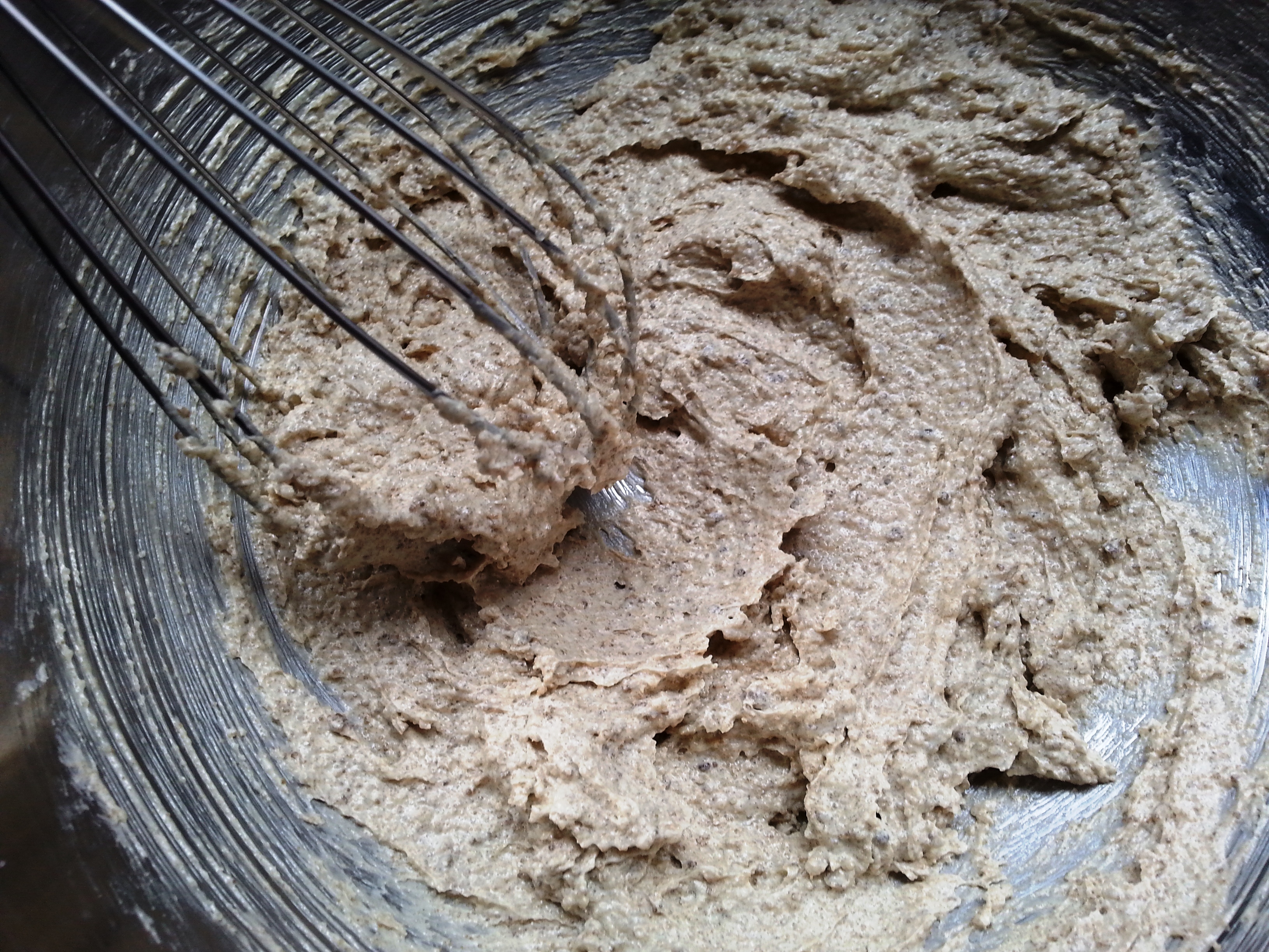 O preparo dessas coisas fofas é bem rápido, então você já pode pré-aquecer o forno (à 190 graus) na hora que começar. Em uma vasilha misture a farinha de trigo, o fermento e o sal. Em outra vasilha (uma maior, pois nessa você vai bater a massa) coloque o açúcar mascavo, o cristal e a manteiga, bata com um fouet. Bata bastante, até a mistura ficar mais fofa e clara, nesse tom:
