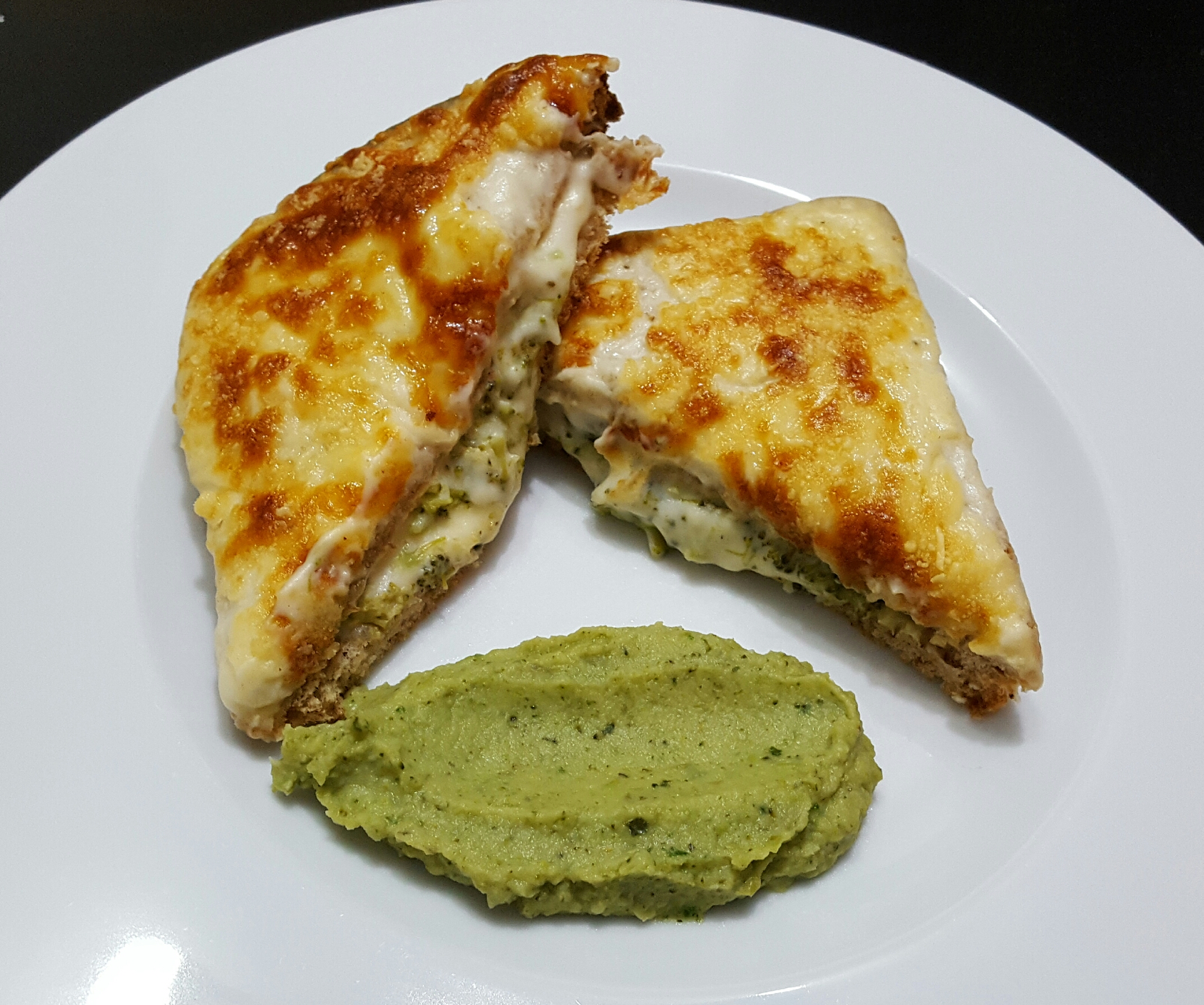 Agora vamos a montagem: Com as fatias prontas, com o molho pronto e brócolis cozido, é hora de montar: Pique o brócolis em pedacinhos bem miúdos. E monte na seguinte sequência: Uma fatia de pão, um pouco do queijo (gosto de ser generoso com o queijo), um pouco do brócolis, 2 ou 3 colheres de sopa cheias de molho béchamel, a outra fatia de pão (sempre com a parte que passou manteiga e mostarda viradas para dentro do sanduíche), por cima do sanduíche então já fechado coloque mais 2 ou 3 colheres de sopa de béchamel, e finalize com mais queijo por cima. Se quiser pode por também um pouco de queijo parmesão pra finalizar.