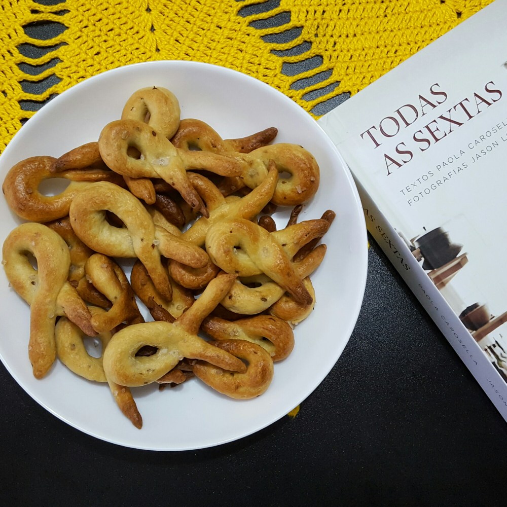 Primeiro post do projeto “Gratidão de todas as sextas” – Cozinhar todas as 94 receitas do livro “Todas as sextas”, de @paolacarosella (Esse projeto tem um porque, clique aqui e leia o post que publiquei dia 11/11, explico lá tudo com todo meu coração). Receita 1/94: Taralli. Um petisco salgadinho e empolgante. Tem que moldar com os dedos. É tão autoral moldar com os dedos, cada um molda com os dedos que tem. Foi engraçado decidir com qual receita começar. Eu queria fazer todas, sentir todas. Algumas são mais complexas. Decidi que era melhor iniciar por uma mais simples – a gente precisa respeitar o tempo certo para subir alguns degraus. Foi também engraçado ver o tanto que me preocupei com os ingredientes das receitas, suas origens e composições. A escolha do ingrediente é um ato social, Paola fala disso. E foi como se ela estivesse ali, vendo como eu escolhia e cozinhava. Quando você conheceu, se emocionou e viu sentido na história da cozinheira você tem bons motivos pra seguir a receita dela a risca. Além de respeitar a generosidade da natureza e dos animais, eu precisava também respeitar a história e generosidade da cozinheira, que estava ali através do livro, me ensinando alguma coisa boa. Foi muito bom fazer Taralli e pensar em tudo isso. Foi muito bom ter a massa nos meus dedos e pensar em tudo que signfica transformar a natureza com minhas mãos. E que delícia. O sabor deles foi tão bom quanto fazer. Comemos em casa toda a quantidade da receita em uma tarde – uma tarde de folga, de conversa, de tempo que correu lento e bom, tempo generoso. Ficaram marcas boas que o Taralli deixou. Estou feliz.
