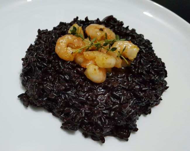É tecnicamente impossível não amar arroz negro com camarão, um par romântico que deu mais certo que Julia Roberts e Richard Gere em “Uma linda mulher”! O Arroz negro tem uma intensidade, um caldo escuro e forte que brilha e encanta em aparência e sabor. O camarão traz um tom de mar para o caldo desse risoto que faz toda diferença, e o tomilho coroa essa estrela. Extrair a essência genuína de cada ingrediente e combiná-los de modo que um respeite a composição do outro, não se agridam nem se destruam, mas se combinem com harmonia, coerência e gentileza. As ofertas da natureza são imensamente exuberantes, quantos presentes nos dão. Esse risoto é mais fácil do que parece, e nos eleva de alguma maneira. Vem aprender!