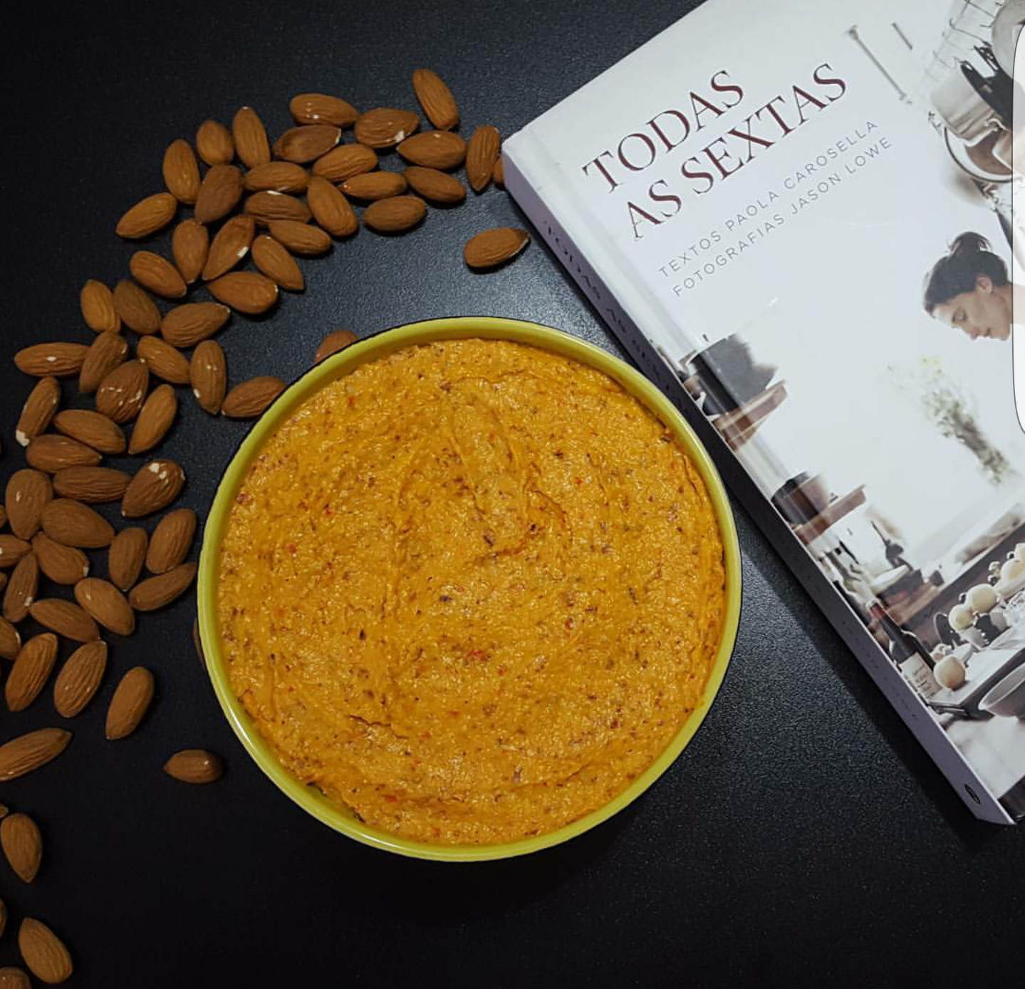 Sexta-feira, dia do projeto “Gratidão de todas as sextas” – Cozinhar todas as 94 receitas do livro “Todas as sextas”, de @paolacarosella (Esse projeto tem um porque, clique aqui e leia o post que publiquei dia 11/11/16, explico lá tudo com todo meu coração). Receita 26/94: Romesco. Um molho (o meu ficou mais uma pasta) boa para peixe, para legumes, boa para um pão, boa pra acender em você alguma coisa provocante e mesmo assim delicada, que te incendeia mas ao mesmo tempo aconchega e abraça. O preparo foi delicioso – amei cortar, assar, tostar, triturar, sentir o cheiro e afeto de todas essas etapas – e ver tudo virar isso, isso que pra mim é muito lindo, além de tudo de sabor, é lindo de ver. Essa receita eu fiz semana passada para postar hoje, porque hoje viajo para longe, mas ainda assim é dia de agradecer, dessa vez com o Romesco.