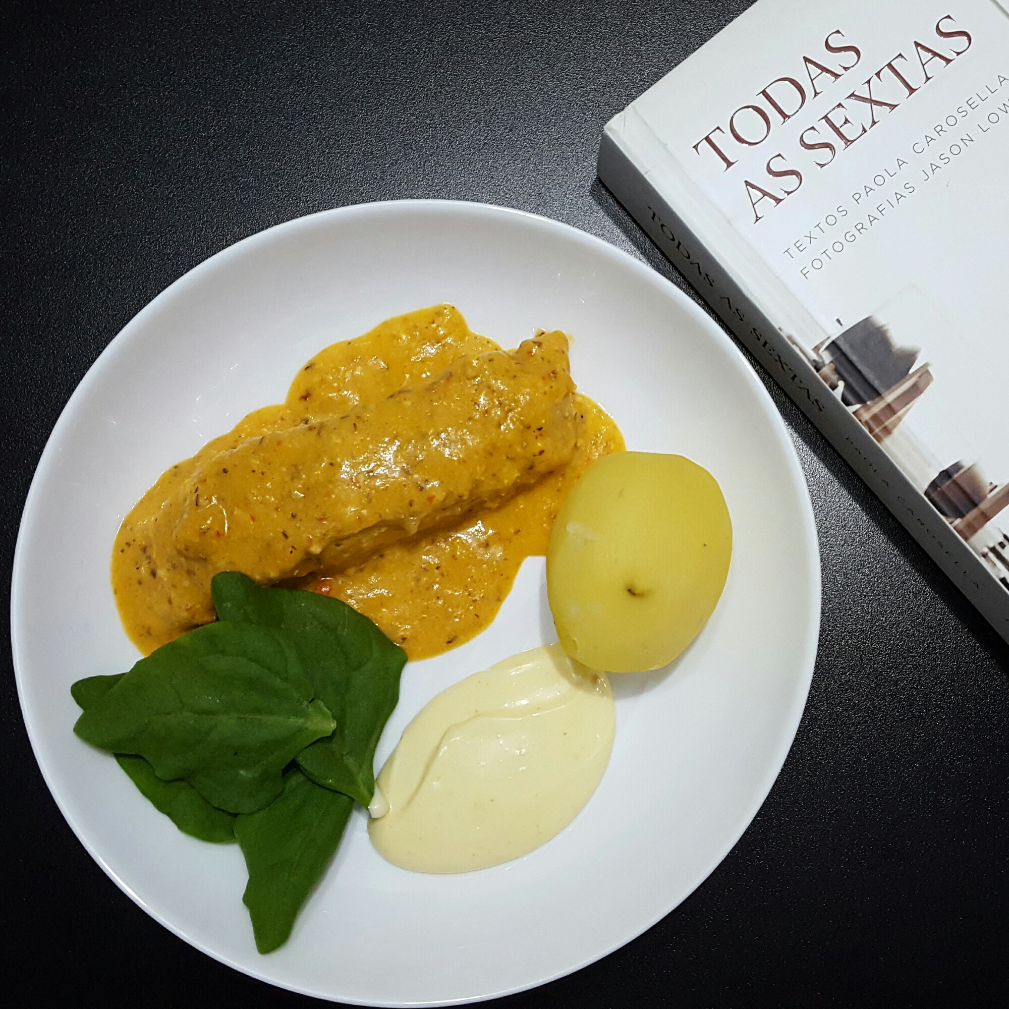 Sexta-feira, dia do projeto “Gratidão de todas as sextas” – Cozinhar todas as 94 receitas do livro “Todas as sextas”, de @paolacarosella (Esse projeto tem um porque, clique aqui e leia o post que publiquei dia 11/11/16, explico lá tudo com todo meu coração). Receita 27/94: Romesco de peixe com batatas. Faz 3 semanas que não posto a receita da semana do projeto de gratidão. Eu estava num outro canto do mundo e não tinha uma cozinha ou tempo suficiente para cozinhar as receitas, tive que pausar. Mas agora é hora de voltar. Depois de longos e lindos 20 dias eu me debruço mais uma vez na cozinha e, ainda embaraçado nas memórias de uma viagem cheia de marcas fortes, cozinho. Cozinho o peixe, o molho, as batatas, com sentimentos de saudade, desejo, planos, detalhes de angústia e apertos, mas muita vida. Estava ali, tudo isso na cozinha junto comigo. Achei tão lindo a Paola no livro pedir para as batatas serem descascadas com cuidado, torneadas para ficarem lindas. Fiz o meu melhor para que ficassem. As batatas foram tratadas com muito carinho. Esse prato é lindo e bom. O modo como pude visitar meus sentimentos desses dias enquanto cozinhava, reencontrando o feito de minhas mãos, a natureza e meu modo de oração, também é lindo e bom. A cozinha, especialmente esses dias, é um divã, um colo que consola mas que ao mesmo tempo revela muito de nós a nós mesmos. Lembrando que o objetivo desse projeto é fazer, sentir algo enquanto faz, pensar em gratidão e compartilhar essa experiência toda. Então, isso tudo veio da minha cozinha essa semana, de mim, e do Romesco de peixe com batatas. É importante agradecer, e deixar a vida fluir. Tudo flui. Obrigado.