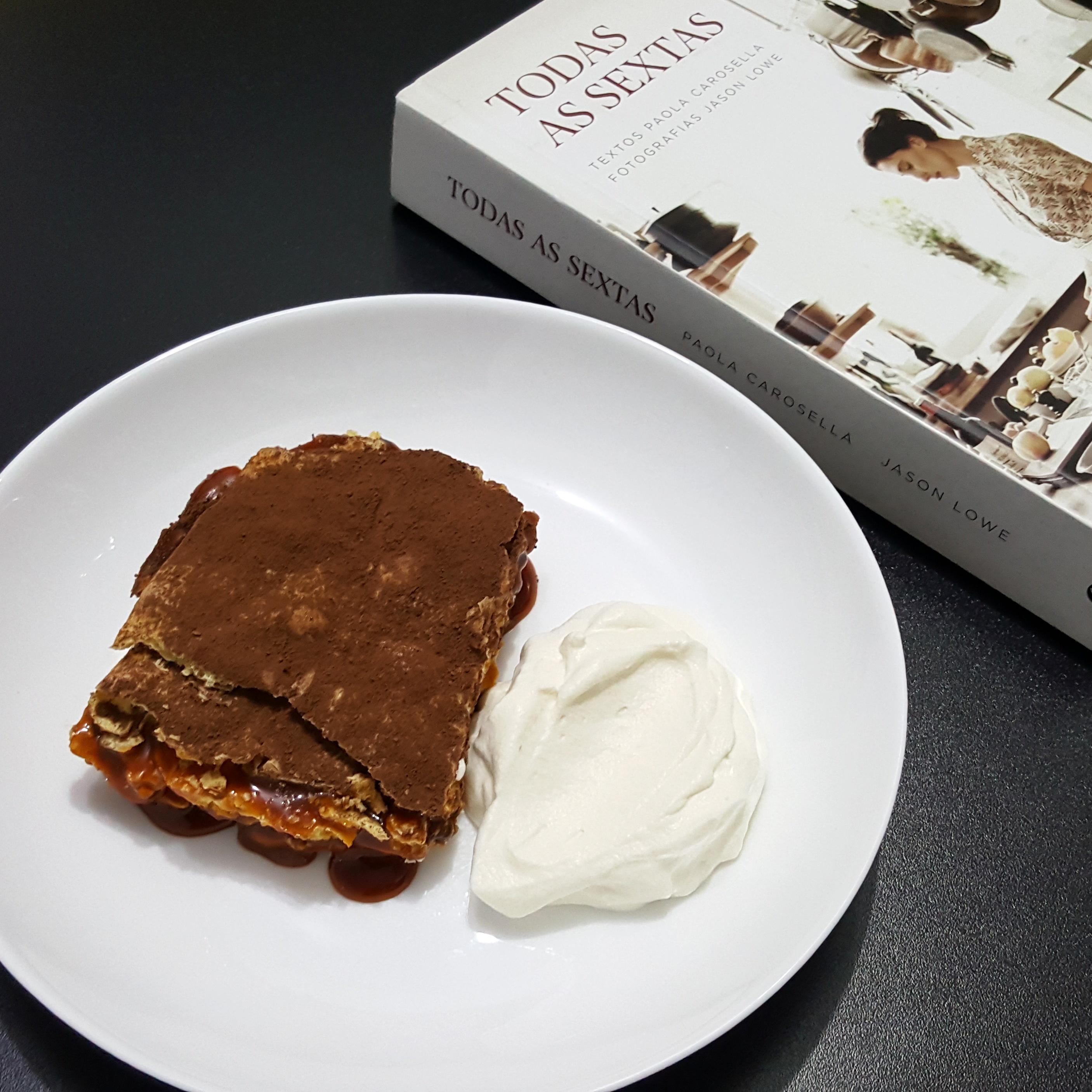 Sexta-feira, dia do projeto “Gratidão de todas as sextas” – Cozinhar todas as 94 receitas do livro “Todas as sextas”, de @paolacarosella (Esse projeto tem um porque, clique aqui e leia o post que publiquei dia 11/11/16, explico lá tudo com todo meu coração). Receita 34/94: Tabletón mendocino. Fazer doce de leite em casa é pra sempre uma emoção. Juro que fico perto da panela as quase 6 horas de cozimento lento dele, apreciando a mudança de cor e textura do leite. O tempo e o fogo o transformando. É como uma dança, um espetáculo. A massa crocante e seu perfume de laranja e erva-doce suaviza qualquer ferida dessa vida que às vezes é tão ardida e precisa ser suavizada. O chantili de cachaça que acompanha – foi o PRIMEIRO CHANTILI QUE BATI NA MÃO NA VIDA (em caps, pra ser verossímel)! Eu não tinha ideia do quanto isso era emocioante! Quando terminei e vi a textura linda e generosa daquele chantili… (suspiros de amor eterno nessa parte) fiquei abobado e fiz até uma musiquinha de alegria em homenagem ao chantili (essas bem ridículas que inventamos quando estamos empolgados, e que eu jamais reproduziria aqui), enfim. Tudo coroado com cacau da linda Bahia por cima, que alegria. Essa receita é um doce intenso e equilibrado, sem exagero – porque o constraste equilibra e faz o espetáculo, nos doces e na vida. Gratidão.