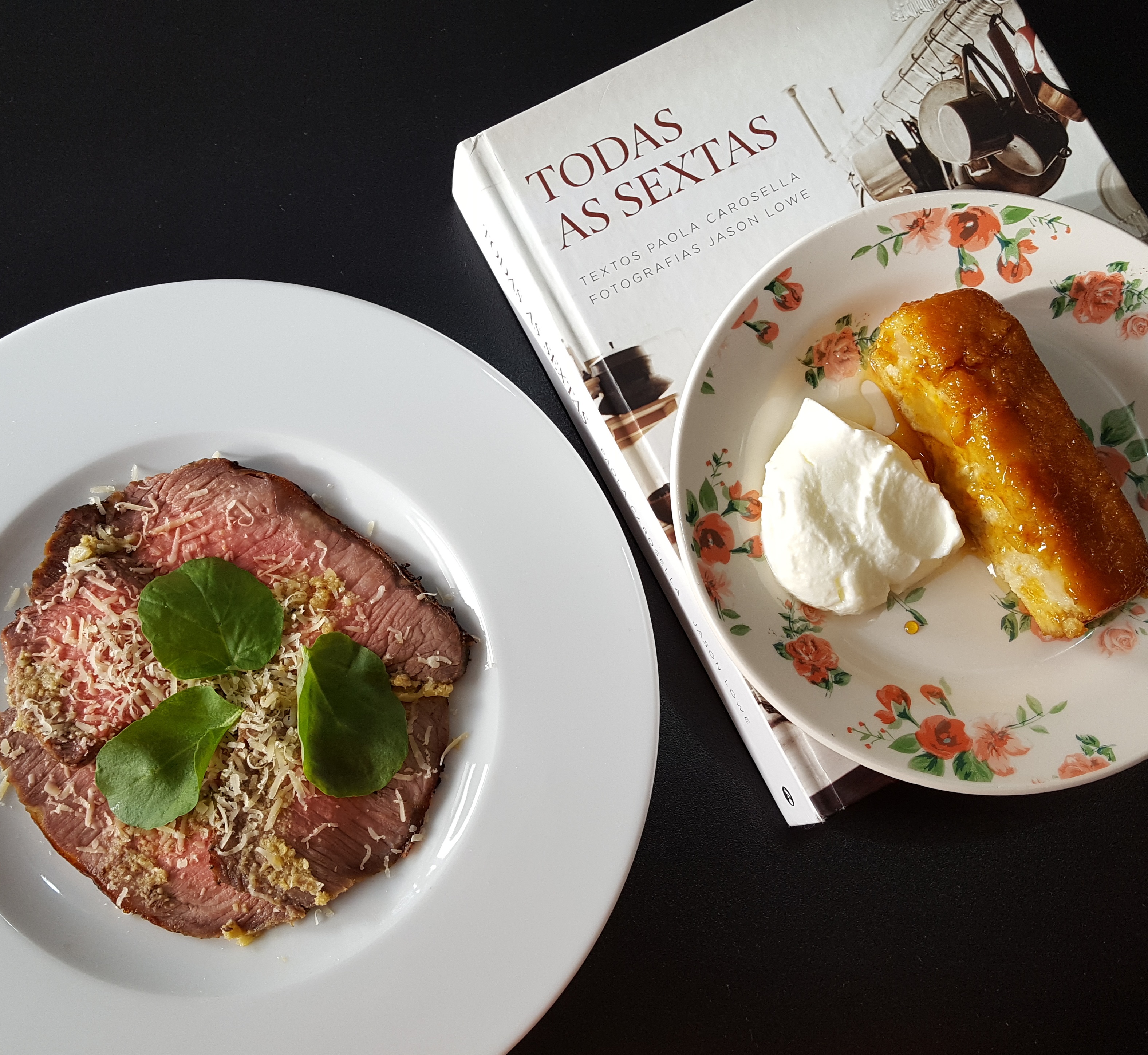 Sexta-feira, dia do projeto “Gratidão de todas as sextas” – Cozinhar todas as 94 receitas do livro “Todas as sextas”, de @paolacarosella (Esse projeto tem um porque, clique aqui e leia o post que publiquei dia 11/11/16, explico lá tudo com todo meu coração). Receita 52/94: Miolo de contrafilé rosado com bagna cauda. Receita 53/94: Tarantela de peras com coalhada. A bagna cauda eu fiz com o samba de Dona Ivone Lara, enquanto o alho cozinhava, ela entrou na minha cozinha dizendo: “Foram me chamar, eu estou aqui, o que é que há?”. A carne ficou 1 dia temperada, na geladeira. O tempo tem se mostrado um senhor importante e bonito, quando o respeitamos e entendemos sua cara. Tirei a carne da geladeira em uma manhã fria dessas de julho, aqui em São Paulo. Ela precisava entrar em temperatura ambiente antes de eu assá-la. Enquanto ela assava, mais tarde, eu tomava um vinho, pequenos goles, grandes sonhos. Assei. Ficou linda. A tarantela de peras – um pudim de peras – eu fiz com a música ousada de Caetano, um baiano que me inspira pra sempre. Agora me responda se algo que foi feito com Paola Carosella e Caetano Veloso podia ficar ruim? Seria ilógico demais. Maria, a Bethânia, também esteve na minha cozinha, enquanto eu comia. Foi tudo sagrado demais. Eu cozinhei junto. Não mexe comigo, que eu não ando só. Gratidão.