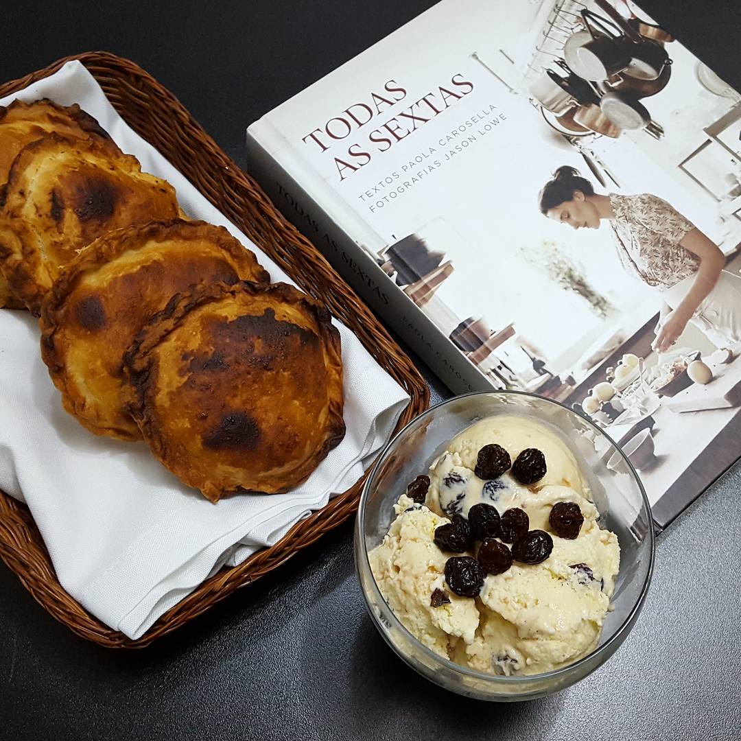 Sexta-feira, dia do projeto “Gratidão de todas as sextas” – Cozinhar todas as 94 receitas do livro “Todas as sextas”, de @paolacarosella (Esse projeto tem um porque, clique aqui e leia o post que publiquei dia 11/11/16, explico lá tudo com todo meu coração). Receita 59/94: Sorvete de uvas-passas com Pedro Ximénez. Receita 60/94: Confit de atum. Receita 61/94: Empanadas de atum. Fazer sorvete com a mão, sem máquina, mexendo de hora em hora. É bonito. Mexer de hora em hora uma mistura honesta até ela virar sorvete te ensina coisas importantes, porque entre essas horas de espera, você presta atenção no tempo, e ele então corre e se revela diferente. O confit de atum e a empanada feita com ele também ensinam coisas, falam dessa américa espanhola colorida e mágica cheia de significado em cada tempero e canto. Mas esses dois também ensinam sobre o tempo – não comprar o atum em lata mas fazer em casa. Entender a verdade do bicho, preparar as coisas com espera, pausa, respeito, tempo. O tempo, como disse Caetano Veloso: “és um dos deuses mais lindos. Tempo, tempo, tempo”. Cozinhar direito é uma reconexão com a divindade do tempo. Espero que entendam. Dia de agradecer.