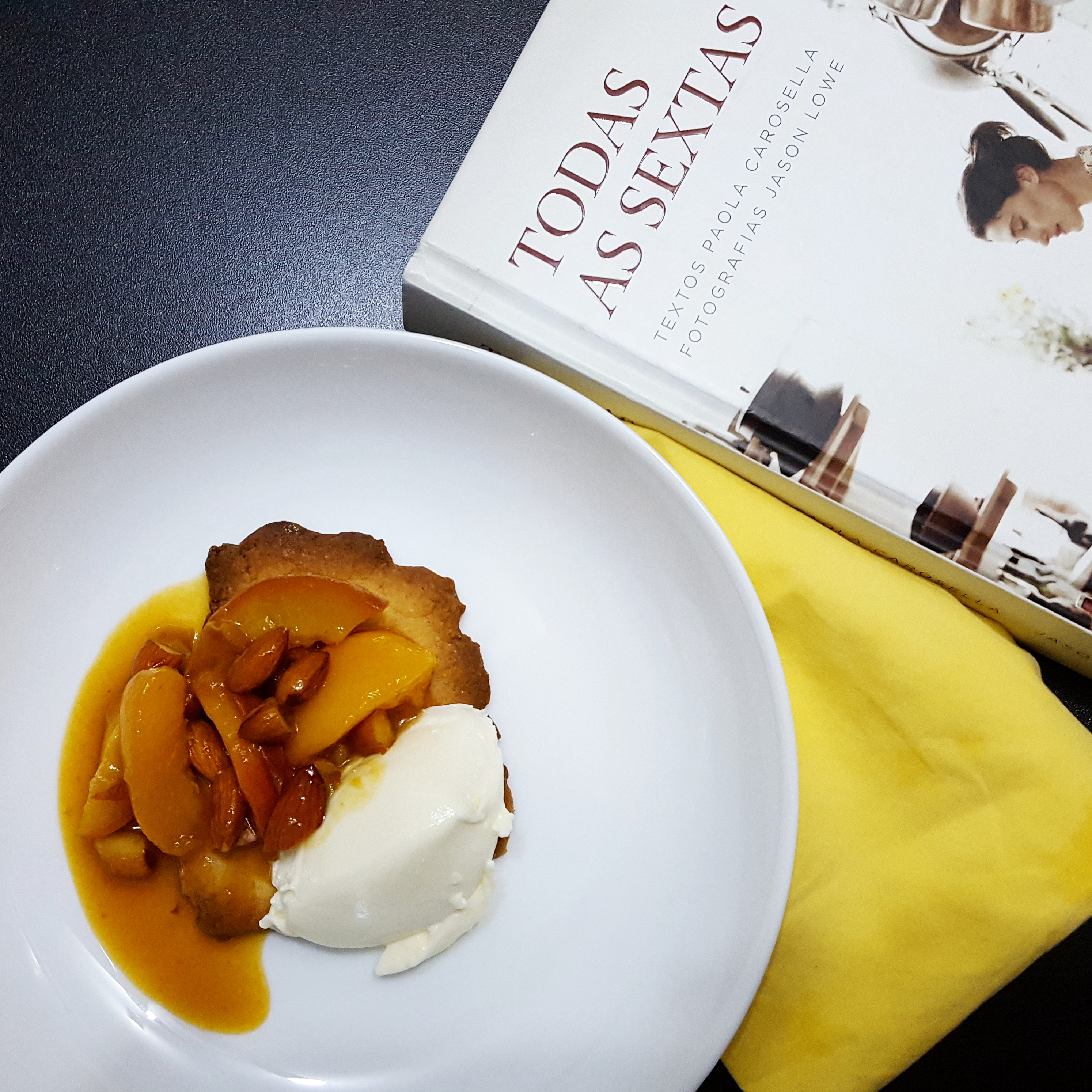 ​Sexta-feira, dia do projeto “Gratidão de todas as sextas” – Cozinhar todas as 94 receitas do livro “Todas as sextas”, de @paolacarosella (Esse projeto tem um porque, clique aqui e leia o post que publiquei dia 11/11/16, explico lá tudo com todo meu coração). Receita 78/94: Tortas rústicas de frutas, amêndoas e panna cotta. Um post atrasado, porque ontem foi um dia intenso e não deu para postar – mas não tem problema, porque na real a lição mais forte do livro “Todas as sextas” é uma ressignificação do valor do tempo. Temos que aprender a esperar o tempo que as coisas precisam, nem tudo fica pronto na hora que queremos. Então, me sinto em paz em atrasar, afinal. Falando em tempo, essa foi uma receita que esse conceito estava presente. Esperar as muitas horas para a fruta ficar marinando no licor Amaretto, esperar as horas para a panna cotta atingir sua textura magestosa. Ficar à espera de algumas coisas nos ensina algo, devemos nos acalmar mais com a necessidade de esperar. Enfim. As texturas são lindas, eu gostei tanto dessa sobremesa que tenho vontade de fazê-la muitas outras vezes sem nenhuma preocupação em esperar o tempo que ela leva pra ser feita. Quando entendemos que o bom da vida leva um tempo, meus amigos, a vida muda. Obrigado, torta e Paola, por mais um contato com o valor do tempo.