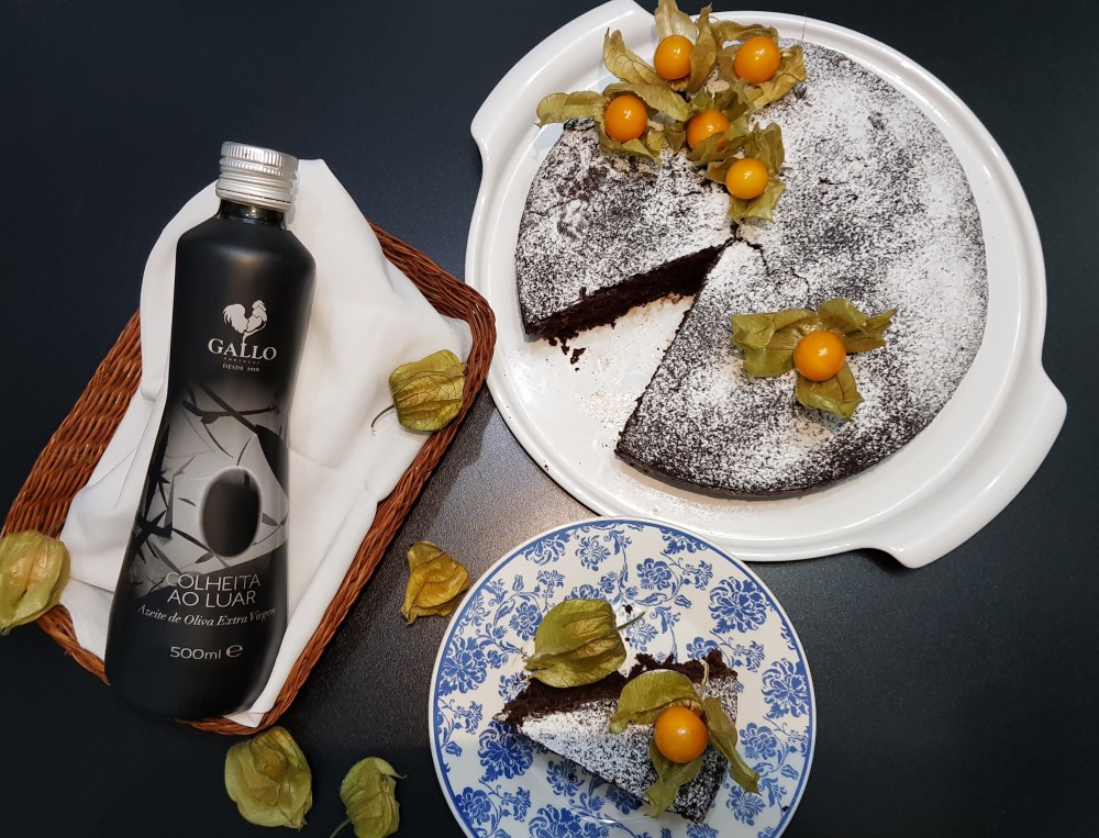 Sair do uso comum dos ingredientes é importante e bonito, nossas possibilidades sensoriais com comida se expandem e a vida fica mais interessante, sério . Fora que, como sempre digo, a cozinha muitas vezes é ensaio do que podemos fazer na vida no geral – comece ousando o novo no seu paladar e depois entenda a beleza de fazer isso em tantas outras coisas na sua existência. Ousadia faz bem. É por isso que hoje estou aqui para falar de chocolate com azeite de oliva – O azeite proporciona um realce mágico no sabor de uma sobremesa com chocolate, transformando muito a experiência. Esse bolo que compartilho a receita tem o azeite como gordura base, o que traz um sabor marcante. Além disso, acrescento nessa receita iogurte e bicarbonato de sódio, que juntos criam uma reação química que garante uma umidade emocionante na massa (suspiros). E como se não bastasse tanta emoção, ainda acrescento chocolate picado, o que lembra aquele prazer de um cookie, cheio de pedacinhos de chocolate, trazendo ainda mais umidade. Faça, ouse e se divirta fazendo, e me conta o que sentiu – porque sentir algo é importante, talvez o mais importante. Bon appétit.
