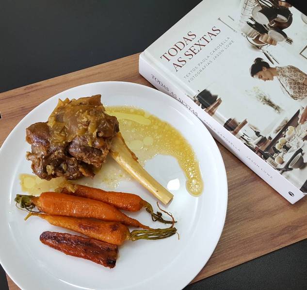 Sexta-feira, dia do projeto “Gratidão de todas as sextas” – Cozinhar todas as 94 receitas do livro “Todas as sextas”, de @paolacarosella (Esse projeto tem um porque, clique aqui e leia o post que publiquei dia 11/11/16, explico lá tudo com todo meu coração). Receita 82/94: Stinco de cordeiro com laranjas e cenouras. Conhecer de perto o tempo que cada carne leva para ficar maravilhosa, conhecer melhor o animal, suas características, seu gosto, que acompanhamento o dignifica – Isso constrói na gente uma intimidade com a natureza. A gastronomia tem o poder de nos tornar mais intimos do mundo natural, e ele é tão impressionante que quanto mais nos aproximamos dele mais o respeitamos e nos sentimos honrados em ser sua parte. É, cozinhar pela primeira vez stinco de cordeiro, do jeito que a Paola indica, foi tudo isso. Ele ficou uma delícia, minha mãe comeu comigo e gostou muito, lembrou das panelas quentes da infância dela, da terra dela, onde os animais eram também muito respeitados e aproveitados do nariz até o rabo. Foi muito bom. Eu agradeço imensamente a intimidade com a natureza que esse projeto tem construído. Feliz.