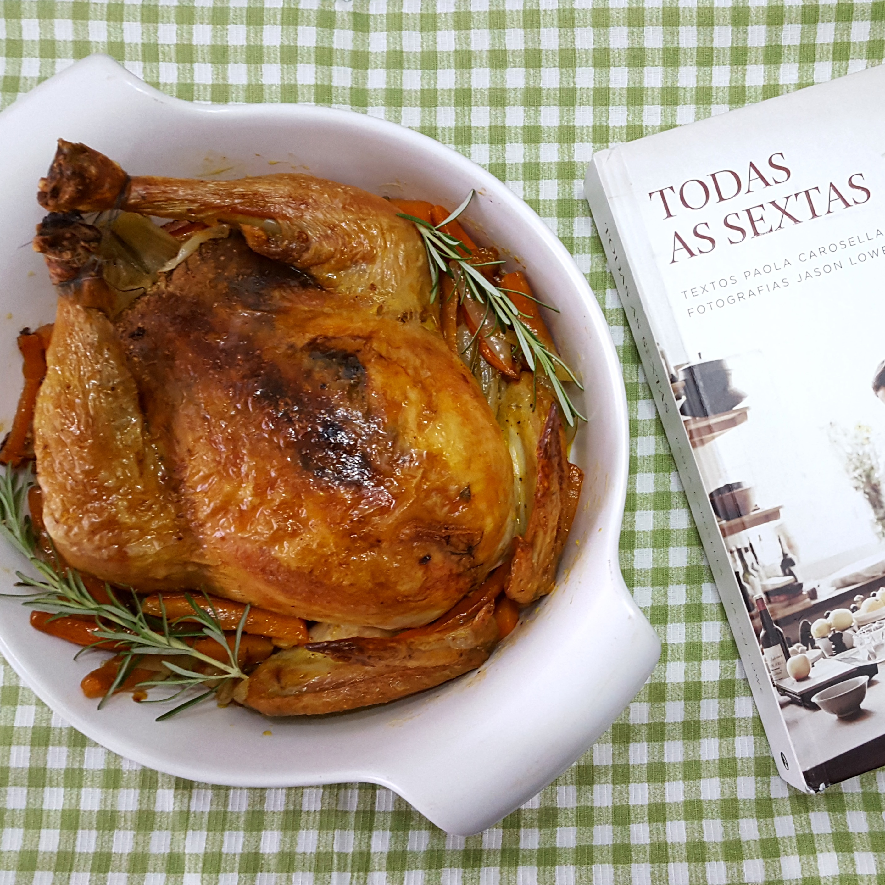 Sexta-feira, dia do projeto “Gratidão de todas as sextas” – Cozinhar todas as 94 receitas do livro “Todas as sextas”, de @paolacarosella (Esse projeto tem um porque, clique aqui e leia o post que publiquei dia 11/11/16, explico lá tudo com todo meu coração). Receita 86/94: Frango recheado de Mimi. Eu não sei mesmo dizer a emoção que foi desossar um frango inteiro pela primeira vez. É algo tão complexo e foi tão lindo conseguir, uma realização profunda que me marcou. Acho que ter feito essa receita pro natal ajudou a emocionar, porque mais do que em qualquer outro dia, nesse dia estamos inspirados à oferecer. Colocar ele lindo assim na mesa, ver todo mundo curioso, cortando, comendo, gostando, esboçando faces de alegria e prazer… poucas coisas me preechem tanto de sentido quanto isso. Eu sei muito bem o porque (assunto longo), e saber é bom: cozinhar é meu jeito de me conectar com um lugar de amor. Isso é profundo em mim. E tem um detalhe muito sério e importante sobre essa receita: Até agora todas as receitas do livro eu segui à risca, sem a menor ousadia de mexer. Mas nessa eu mexi, mudei algumas coisas no recheio, nada demais, mas depois que pensei entendi. Eu só consegui colocar algo mais meu na receita 86 porque, além de ter aprendido muita coisa nas outras 85 receitas que me deram condições diferentes, eu também tenho aprendido no último ano a acreditar mais no que sou eu, no que minha mão constrói. Acho que quando isso acontece a gente sente autorização de achar importante o que pensamos e deixamos algo autoral acontecer. A receita ainda foi a da Paola, mas nessa eu pude ouvir uma voz sutil que vinha de dentro de mim e me deixava confiar, em mim. Entendem a força disso? E assim tem sido, eu crescendo com a vida, crescendo com o livro, crescendo. Nunca estive tão grato com esse projeto quanto hoje.