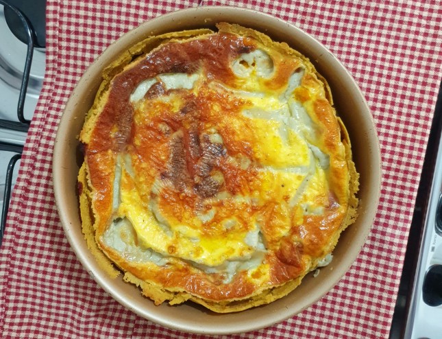 O Recheio básico da quiche consiste em: 4 ovos mais 2 gemas batidas (com fouet) com 250g de creme de leite, sal e pimenta à gosto. Essa parte liquida é a base, aí você incrementa e dá o sabor que quiser para sua quiche. Para essa versão, faça assim: na massa disposta na fôrma coloque cerca de 300g de abóbora cabotiá sem casca, cozida e meio esmagada (não totalmente, não queremos um purê, mantenha uns pedaços), junte cerca de 150g de queijo gorgonzola (se não gostar, pode substituir por outro, os cremosos (tipo cream cheese) ficam muito bons também – nessa usei um queijo cremoso de gorgonzola. Acrescente fios de mel, à gosto, e daí distribua a massa liquida de ovos e finalize com queijo parmesão ralado por cima. Leve para assar no forno pré-aquecido à 180 graus por 30-40 minutos – até dourar levemente. Pronto! Bon appétit!