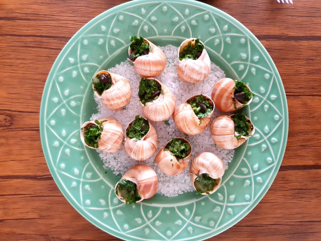 Escargot, do francês, “caracol comestível”. Coma, algumas vezes, coisas que não fazem parte de suas referências culturais. É uma pena que a gente se encerre nos limites do nosso referencial e olhe pro diferente hora com medo, hora com desrespeito, hora com agressão. Chega perto do mundo que não é igual ao seu e construa descobertas, mais respeito, informação e ampliação pessoal autêntica – se aproximando e dando uma chance para aquilo que é contraste com você. Tanta coisa linda pra sentir e viver e a gente perdido em fobias. Descobre porque você tem medo, pede ajuda, e vai ver que mundo lindo e diverso, meu filho. Eu estou falando de provar escargot, mas também estou falando da vida.