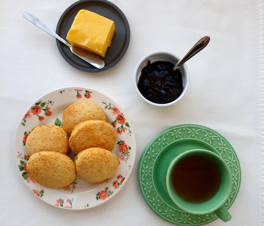 Scones. Bolinhos típicos do tradicional chá da tarde inglês. Muito simples de fazer. Mas antes da receita, quero contar um segredo importante sobre eles: tem um momento de glória que dura cerca de 30 minutos após eles sairem do forno, onde suas extremidades tem algo de um gentil biscoito amanteigado e seu centro é macio e úmido. É um contraste bonito demais na boca. Nesse momento, mesmo em toda sua simplicidade, há uma magia poética e delicada que os scones entregam pra gente. Não ficam ruins depois de 30 min, mas não é mais a mesma emoção.