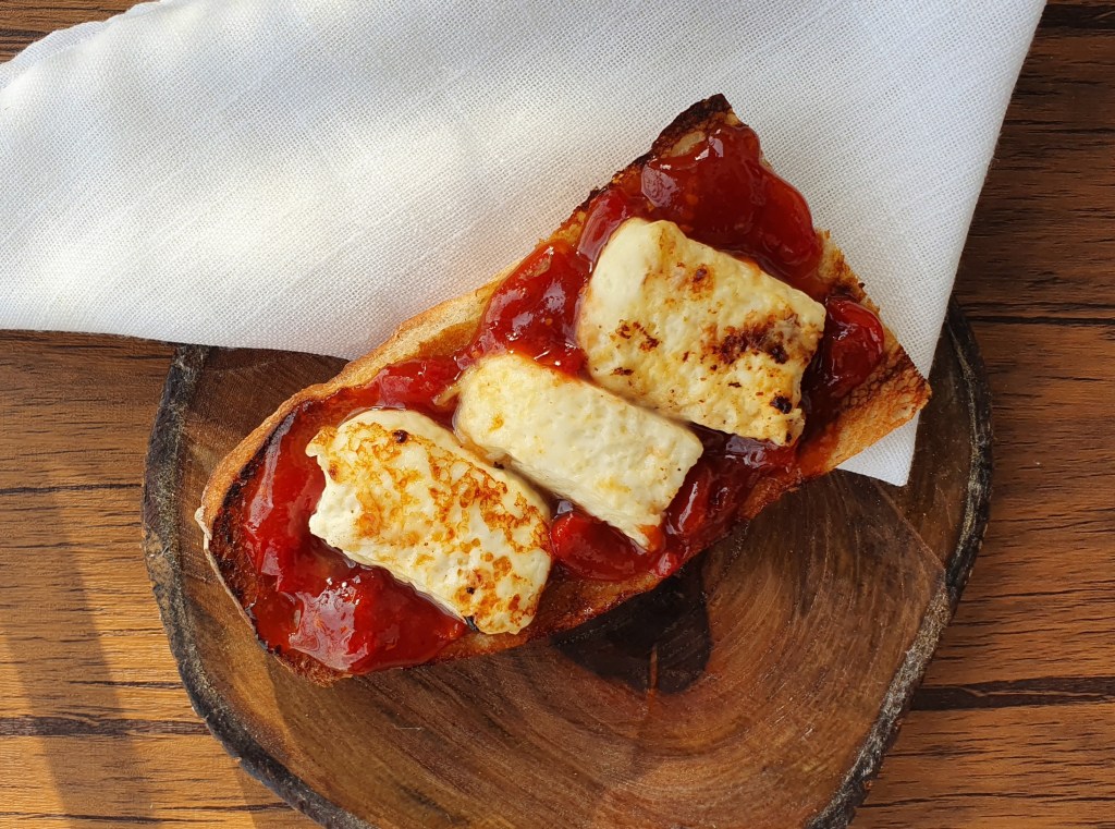 A sensualidade de um pão tostado, por cima o flerte doce e gentil de uma geleia de goiabada com tomate e cobrindo tudo o frescor inocente de um queijo fresco (inocência levemente quebrada – porque o queijo também foi tostado em fogo alto – mas preservada). Essa tartine pra mim é uma história de amor, um encontro exato. Já teve um assim na sua vida?