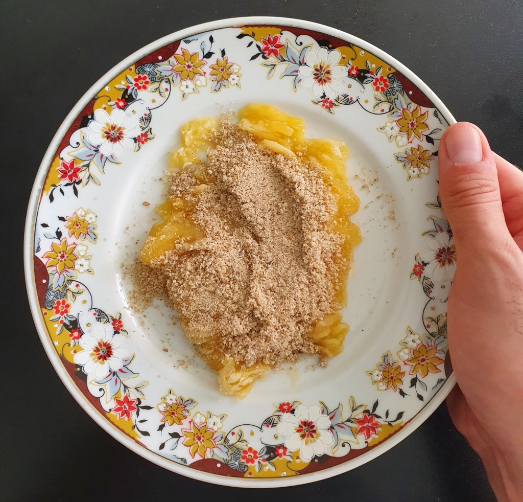 Torre na frigideira 1 xícara de chá de gergelim branco até ter um perfume lindo, mas sem queimar. Coloque então em um liquidificador e triture um pouco, então junte 1 colher cheia de sopa de farinha de mandioca e outra igualmente cheia de açúcar,e triture mais, e é isso. Coloque mais farinha de mandioca que quiser mais solta e seca. Coloca mais açúcar se quiser mais doce. Guarde num pote e obmantenha fechado depois que esfriar, dura muito.