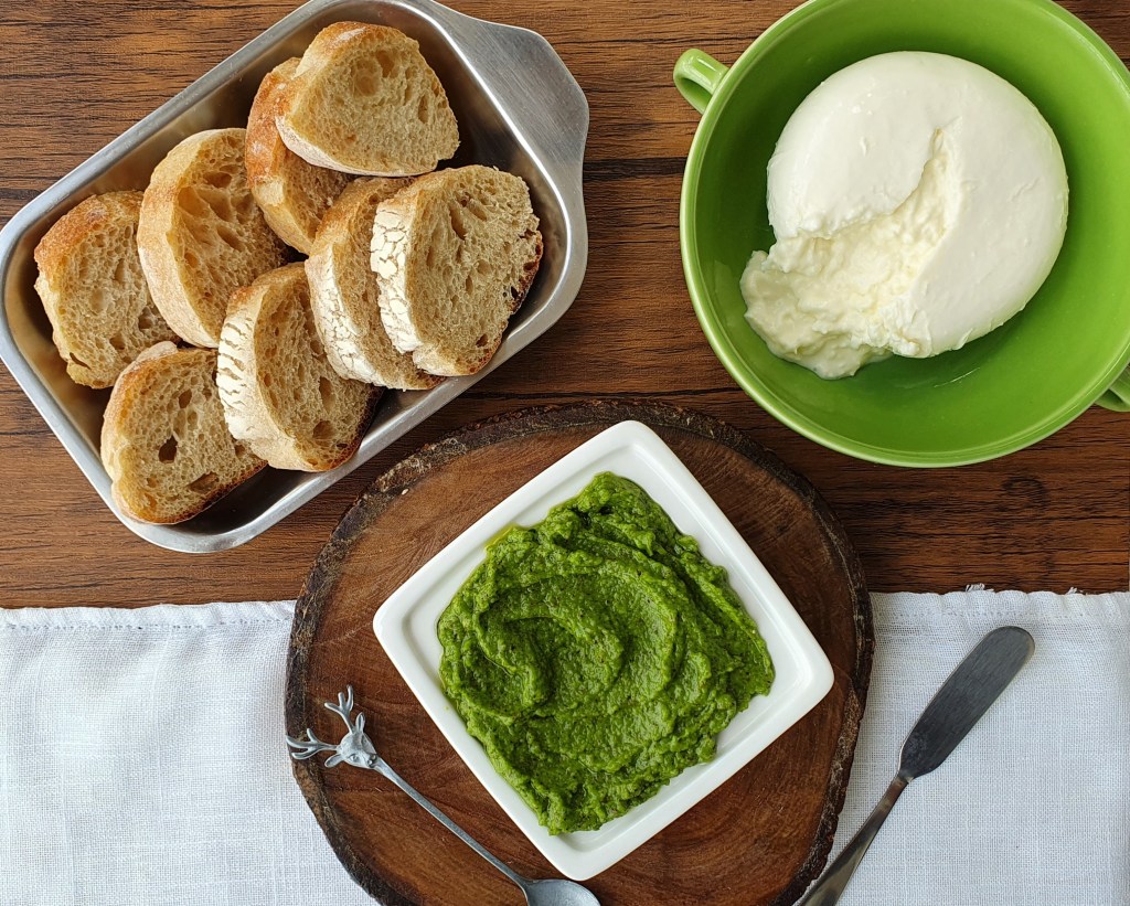 Pesto de espinafre – um formato mais suave da lendária pastinha verde que fica boa com tudo. Amo manjericão (que é o verdinho tradicional usado nessa receita) e seu perfume avassalador, mas acho que às vezes precisamos de coisas mais suaves e espinafre é um verdinho bom pra esse papel. E pastinhas com pãozinhos e queijos do lado são uma dica mara pra noite de natal ou para servir antes da refeição principal de uma festa, pra ter o que beliscar na espera pela ceia (inimigos do jejum).