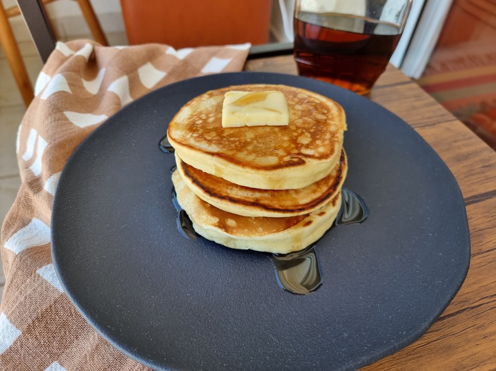 Sirva como quiser, com mel, geleias… meu jeito favorito é fazer uma torre bonita, colocar pedacinhos de manteiga e cobrir com maple syrup (maple syrup me lembra outras horas, felizes, geladas e boas, em Toronto). Do lado um café passado maravilhoso. Um dia que começa assim já deu certo, mesmo que todas as horas seguintes do dia deem errado, essa já faz valer ter acordado.