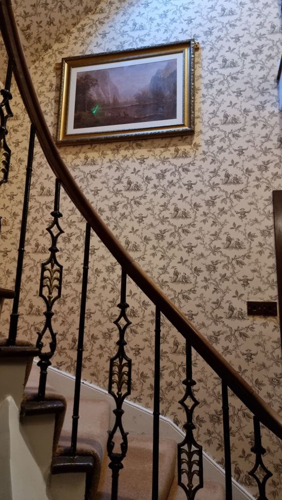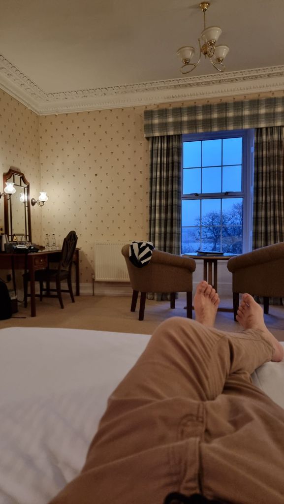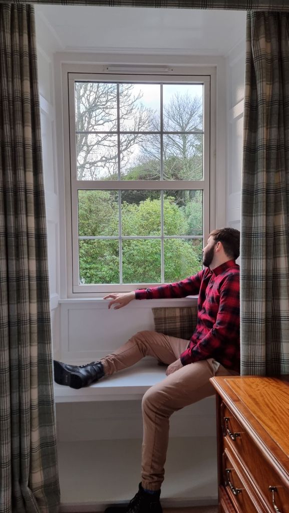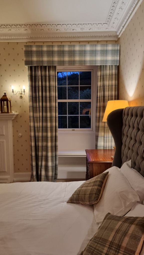 Entrei no quarto escocês, era então outro século. Curiosa a sensação em um lugar que guarda tanta lembrança que eu nunca vou saber qual é. A memória, assim viva nos tecidos e mobília, me dá uma sensação de infinito, de passear no contínuo fio do tempo. Tenho muito amor pelo meu tempo presente mas sempre vou flertar com o passado, viver um caso com essa fantasia gostosa sobre um tempo que não vivi. O charme da história que eu só posso deduzir – reparou a delicadeza inocente do papel de parede com tema de jardim? Realmente amo dormir em lugares que fazem com que eu visite outro século, perambulando no tempo-mistério, desde sempre. Nunca vou esquecer do que imaginei (acabei vivendo?) no quarto escocês que entrou em mim.